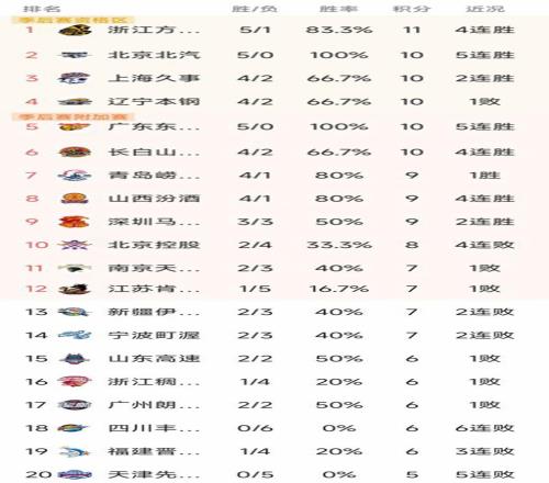 CBA常規(guī)賽第6輪結(jié)束了4場比賽,最新積分榜如下!