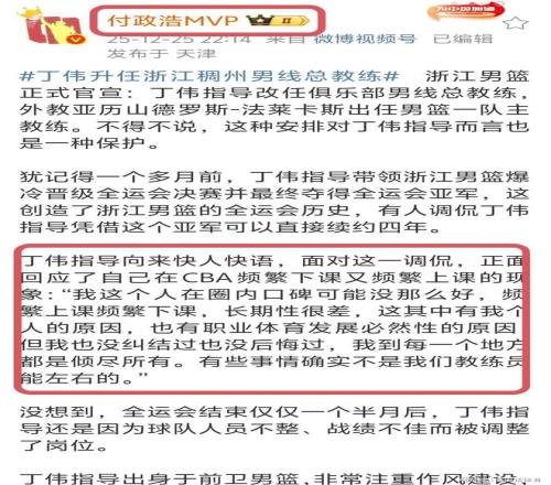 對(duì)于“丁團(tuán)長(zhǎng)”來(lái)講,這已經(jīng)是他第8次從主教練崗位上下崗了。2010年:擔(dān)任浙江隊(duì)主帥,最后下崗;2015年:再度擔(dān)任浙江隊(duì)主帥,不久后下崗;2016年:擔(dān)任同曦隊(duì)主帥,不久后下崗;2017:擔(dān)任北控隊(duì)主帥,然后下崗;2020年:擔(dān)任廣州隊(duì)主帥然后下崗;2020年9月:擔(dān)任山西隊(duì)主帥,然后下崗;2023:擔(dān)任山東隊(duì)主帥,然后下崗;2025年,再次重返浙江隊(duì)任球隊(duì)主帥,如今又下課。
